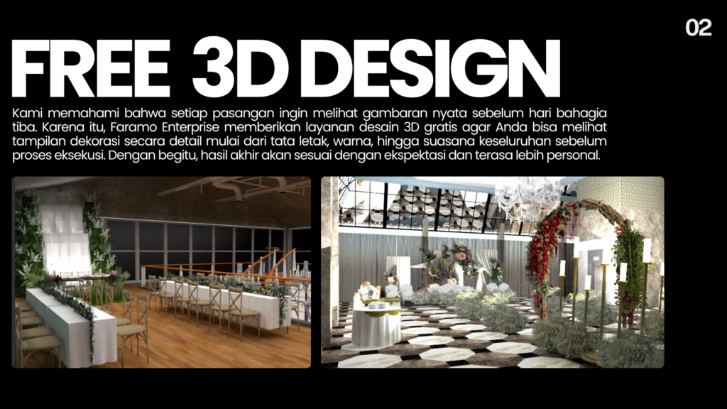 FARAMO ENTERPRISE Layanan Kami Entertainment Dekorasi Sewa Alat All-in Wedding Jakarta Selatan, Pusat & Depok Klik Untuk Tanya Detail Jakarta Barat, Utara & Tangerang Klik Untuk Tanya Detail Jakarta Timur, Bekasi & Bogor Klik Untuk Tanya Detail Apa Kata Mereka? Galeri Faramo (Geser Untuk Melihat) Kenapa Harus Faramo? Vendor List Faramo Catering Decoration Entertainment Photo & Video National Attire International Attire (Bridal) Faramo EnterpriseDewangga CateringPerfect Catering + (10.000/Pax for Buffet)Tidar Catering + (10.000/Pax for Buffet)Ibu Joko + (10.000/Pax for Buffet)Risya + (55.000/Pax for Buffet)Alfabet ++ (55.000/Pax for Buffet)Sekayu ++ (55.000/Pax for Buffet)DTC + (55.000/Pax for Buffet) Labellum Decoration (Owned by Faramo) Faramo Entertainment Faramo PictureStone ImagineBondan PhotoClassigrafV Shoot (+1.500.000)Askar (3.500.000) D’Luvisa WeddingSanggar ViolettaBeblooms (+5.000.000)Dinda Sakato (+10.000.000) KennethB BrideLaurensiaRoyal SwanKara BrideSolyra Counture Konsultasi Gratis Chat Admin